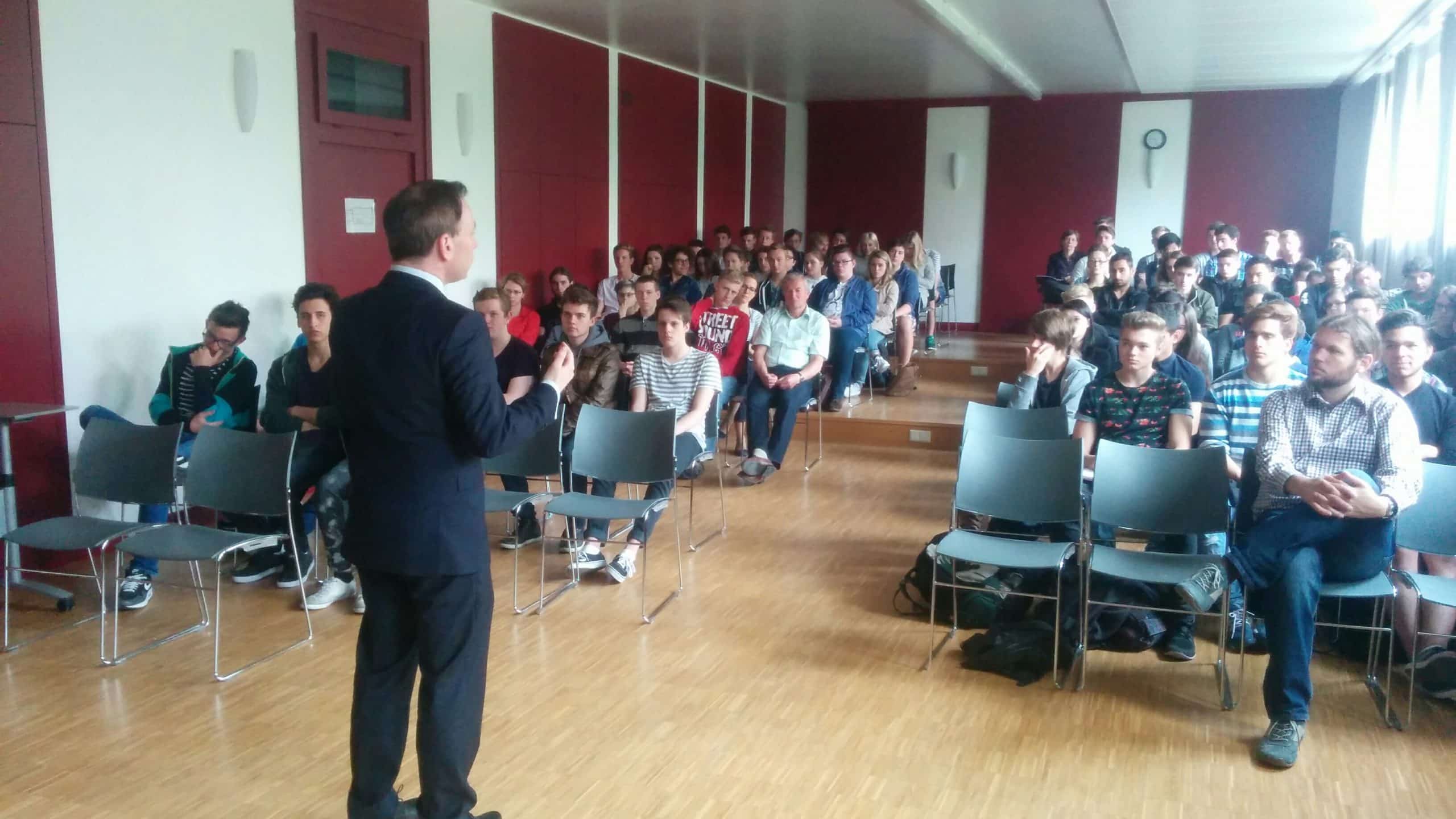Im ersten Teil der Veranstaltung berichtete er vom Werdegang der Europäischen Union und stellte dar, weshalb diese von so großer Notwendigkeit ist, um beispielsweise den Frieden innerhalb Europa zu erhalten. In der sich anschließenden Diskussion wurden hauptsächlich die Themen Asylpolitik, das Freihandelsabkommen TTIP und die Griechenland-Problematik aufgegriffen. Den Schülern wurde die Möglichkeit gegeben, ihre Fragen an Dr. Ulrich zu stellen. So erläuterte er zum Beispiel, dass mehr finanzielle Unterstützung innerhalb der EU geleistet werden muss, um ökonomische Standards für Asylbewerber anzugleichen. Denn dieses Ungleichgewicht sorge dafür, dass mehr Menschen beispielsweise in Deutschland um Asyl bitten als in Griechenland.