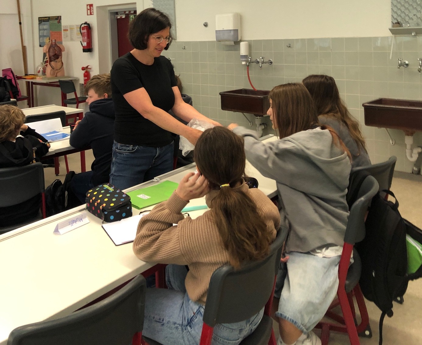 Immer wieder zeigten sich beim Rundgang durch die Stände die großen Industrie-Themen der Region Augsburg sowie der hier ansässigen Industrieunternehmen und Forschungsinstitutionen: Luft- und Raumfahrttechnik, Faserverbund-Werkstoffe und Automationstechnik. Die Schüler bestaunten Raketenmodelle, konnten Flugzeugteile und faserverstärkte Keramik-Bremsscheiben von Sportwagen anfassen und sich die Herstellung von Faserverbund-Werkstoffen erklären lassen.