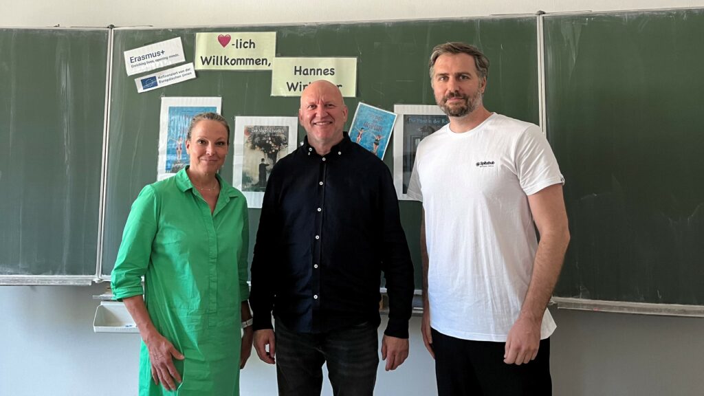 Am vergangenen Montag und Dienstag besuchte der renommierte österreichische Schriftsteller und Drehbuchautor Hannes Wirlinger im Rahmen des Erasmus+-Programms unsere Schule. Am Montag veranstaltete er passend zum Lehrplan einen Workshop für die Lehrkräfte der Fachschaft Deutsch, in dem er einen Einblick in sein Schaffen gab und auf Grundlagen der Filmanalyse einging. Abschließend durften die Lehrenden selbst eine kleine Szene verfassen und vorführen. Am Dienstag folgte dann die Lesung aus seinem Werk Der Vogelschorsch für die 11. Jahrgangsstufe. Dabei hat der Autor gekonnt einige Stellen vorgetragen und dazwischen immer wieder Illustrationen aus dem Roman gezeigt und besprochen. Im zweiten Teil hatten die sehr interessierten und engagierten Schülerinnen und Schüler dann die Möglichkeit Fragen zu stellen, was einige auch genutzt haben. Der ein oder andere Jugendliche dürfte bestimmt auf den Geschmack gekommen sein und wird das Werk nachträglich noch selbst ganz lesen. Wir bedanken uns herzlich für die Veranstaltung und die Zeit mit dir, lieber Hannes. Baba und ganz liebe Grüße von Augsburg nach Wien.
