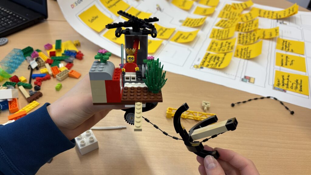Im Anschluss ging es direkt in die Praxis: In den Klassen wurde ein Design-Thinking-Workshop durchgeführt. Schritt für Schritt entwickelten die Gruppen nutzerzentrierte Lösungen für reale Probleme. Erste Prototypen ihrer Geschäftsideen – oder auch das abstrakt dargestellte Problem dahinter – wurden kreativ mit LEGO gebaut und anschließend in einem Elevator Pitch vor der Klasse präsentiert.