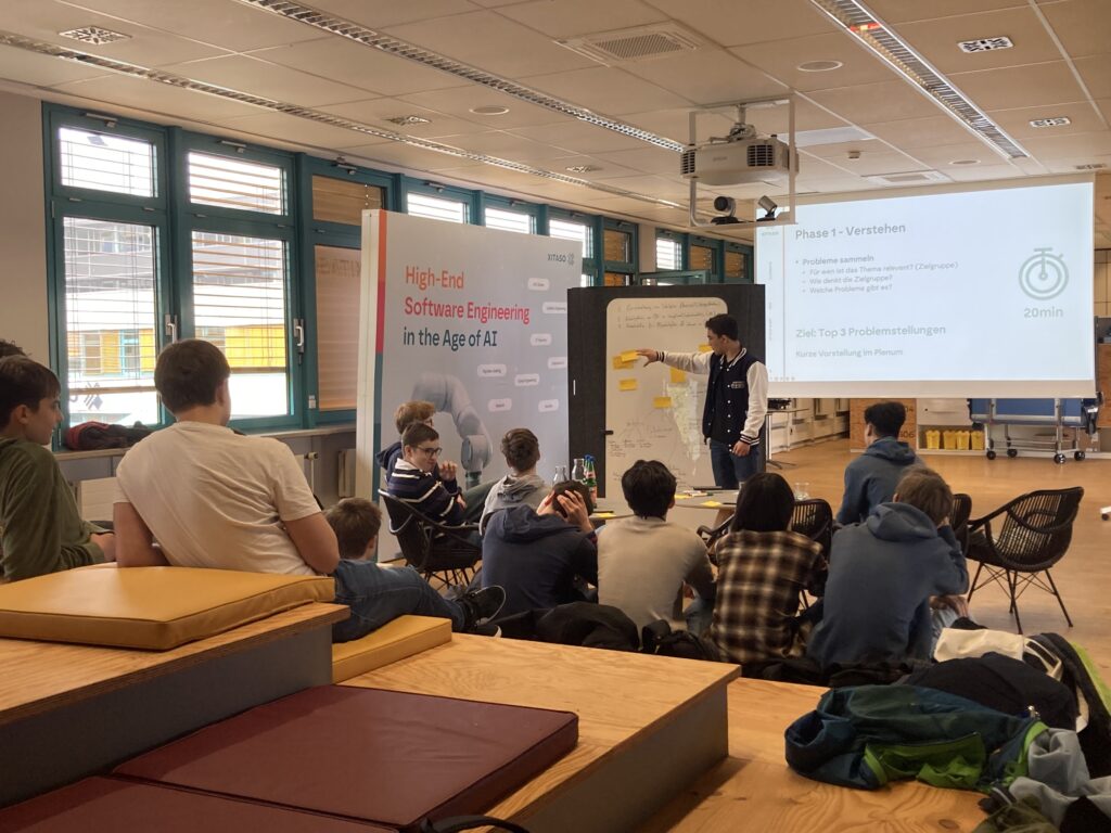 Zu Beginn analysierten die Schülerinnen und Schüler verschiedene Zielgruppen, die im Alltag vor Herausforderungen stehen. Dabei wurden beispielsweise ältere Menschen, Personen mit Einschränkungen oder auch vielbeschäftigte Berufstätige in den Blick genommen. Aufbauend auf diesen Überlegungen erarbeiteten die Gruppen innovative Lösungsansätze.